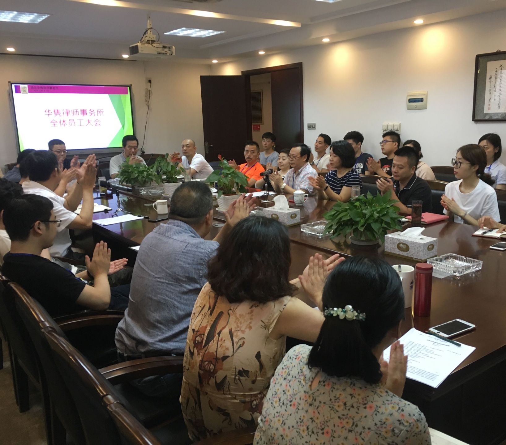 6月30日,在华隽律师事务所召开的全体员工会议上,所管委会副主任、党支部成员王志强代表所党支部和管委会宣布了管委会分工调整和党支部改选的结果。随后,所党支部书记、管委会主任顾俊宣布了所里新引进的两名新一级合伙人,以及从本所优秀专职律师中经推荐考核晋升的一名二级合伙人,并隆重介绍他们与全体与会员工见面。