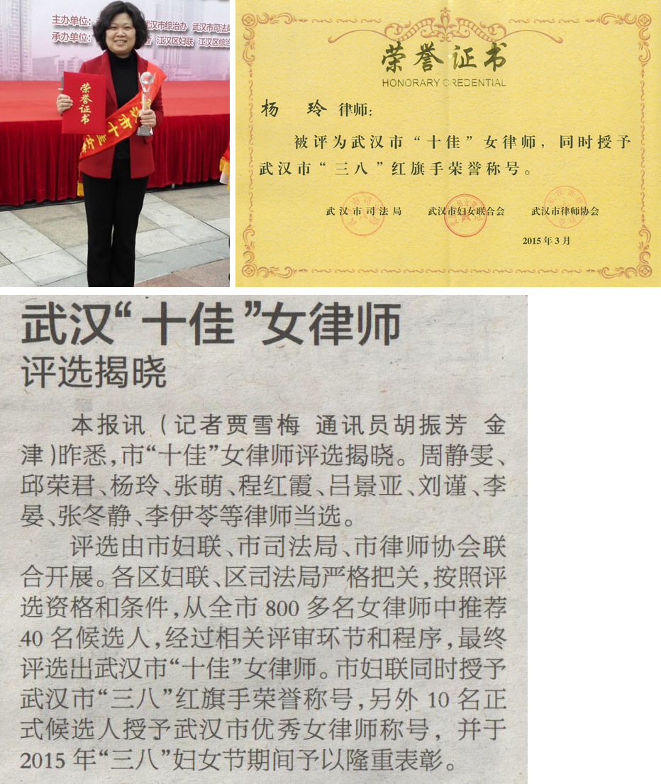 我所律师杨玲(合伙人)喜获“十佳女律师”光荣称号