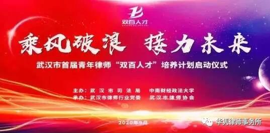 9月11日上午,由武汉市司法局、中南财经政法大学主办,武汉市律师行业党委、武汉市律师协会承办的武汉市首届青年律师“双百人才”培养计划启动仪式在武汉会议中心举行。